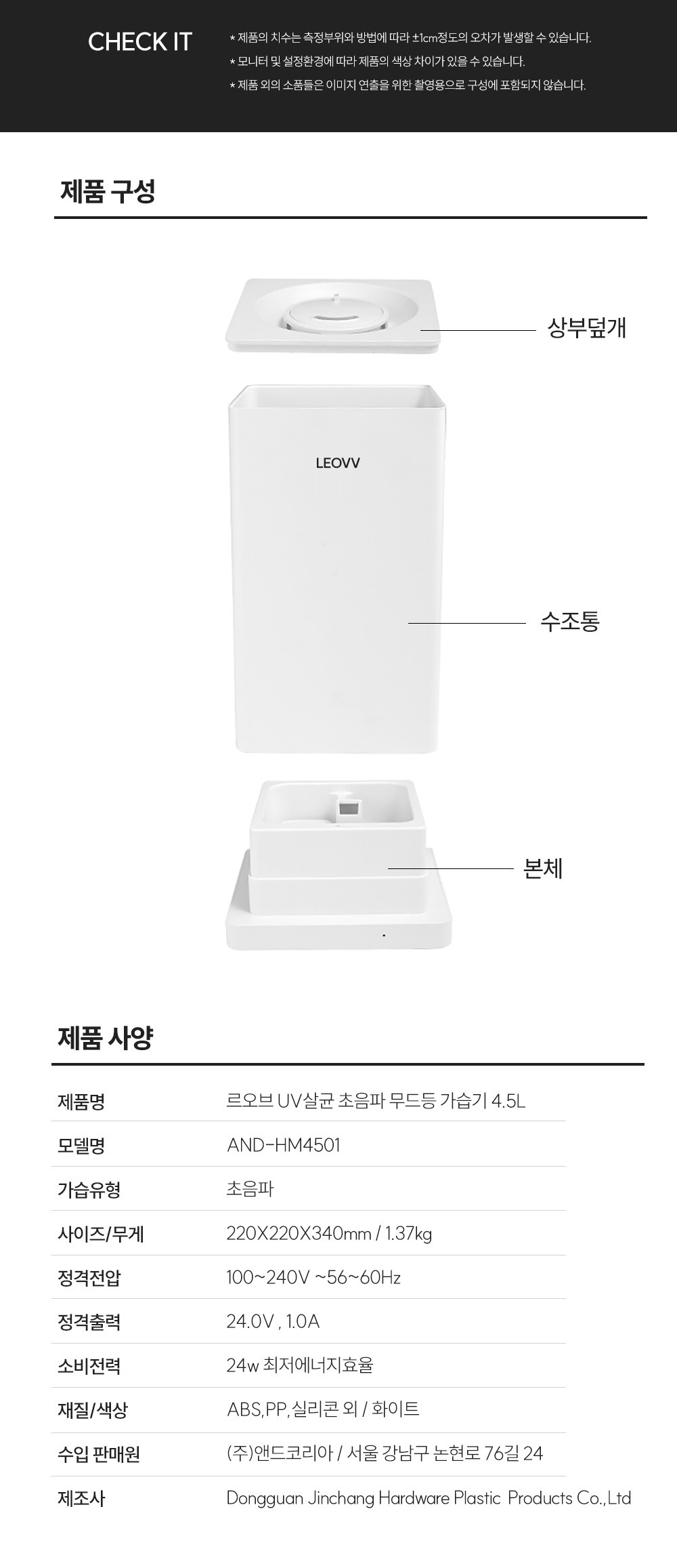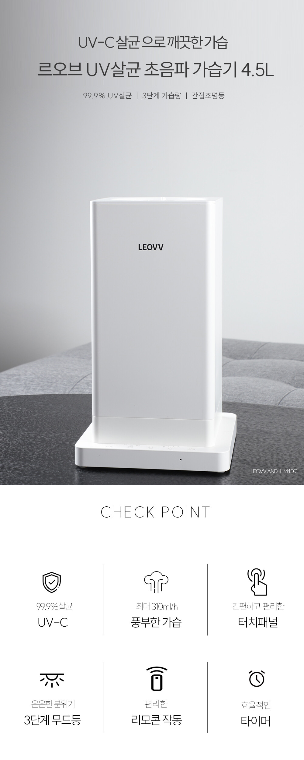 르오브 UV살균 초음파 무드등 가습기 4.5L