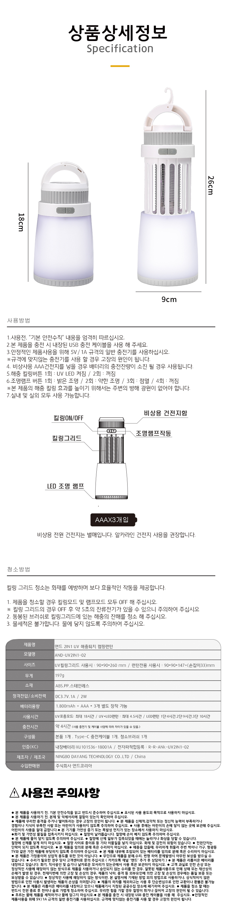 [앤드] 2IN1 UV 해충퇴치 충전식 캠핑랜턴